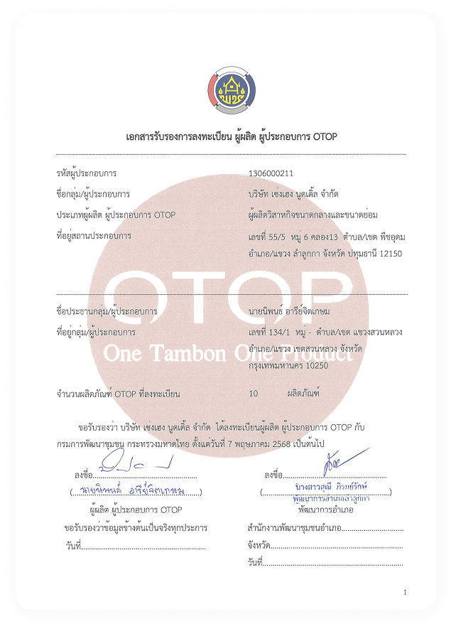 Sengheng Noodle OTOP Certificate
