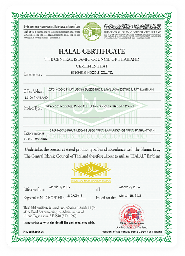 Sengheng Noodle Halal Certificate